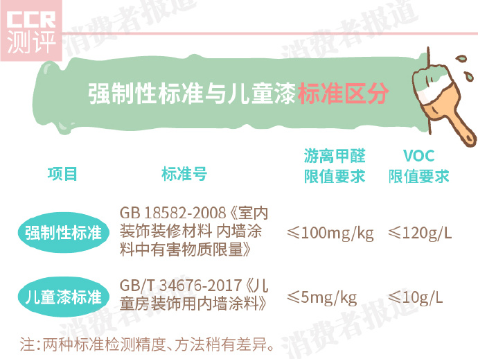 目前各個(gè)品牌包裝上執(zhí)行的仍是18582-2008《室內(nèi)裝飾裝修材料內(nèi)墻涂料中有害物質(zhì)限量》或普通乳膠漆的推薦性標(biāo)準(zhǔn)GB/T 96-2009《合成樹(shù)脂乳液內(nèi)墻涂料》。外包裝上印有兒童漆推薦性國(guó)標(biāo)GB/T 34676-2017 《兒童房裝飾用內(nèi)墻涂料》的只有紫荊花。
